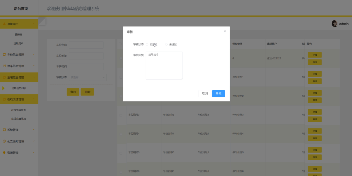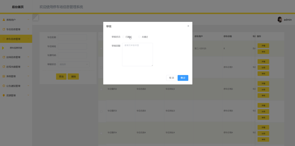 停车信息管理:审核用户的停车请求,记录停车时间和费用,确保收费准确无误。
