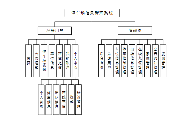本系统旨在满足注册用户和管理员两大角色在停车场管理中的不同需求,提供全面的功能支持。对于注册用户,系统提供了车位查询、在线充值、停车记录查看等便捷功能;而对于管理员,则涵盖车位信息管理、停车审核、公告发布等后台管理效果,确保停车场资源的高效利用与规范化管理。具体能力描述如下: