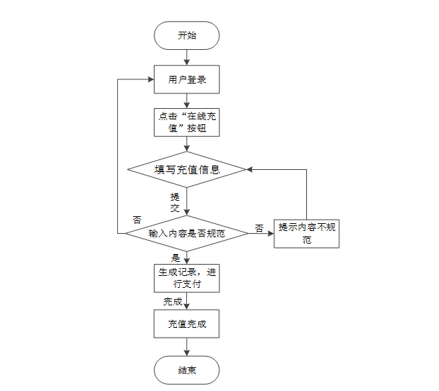 用户在线充值流程以解决账户余额不足问题为目标,分为提交申请与审核处理两个阶段。用户在充值页面选择或输入充值金额,填写备注信息后提交请求,平台将该充值记录保存至数据库并等待审核。管理员登录后台管理系统后,对充值申请进行核实,确认无误后更新用户账户余额,并将充值状态标记为“已支付”。同时,平台向用户发送充值成功通知,确保资金变动透明可查,从而保障用户权益和账户安全。用户进行在线充值流程图如下图所示。