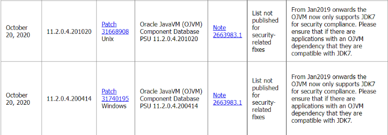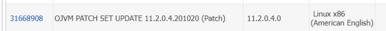Patch description: "OJVM PATCH SET UPDATE 11.2.0.4.201020"