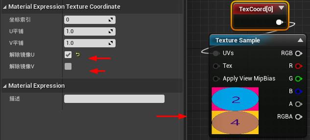 使用节点(Texture Coordinate)来探索镜像UV的工具吧,用它连接Texture Sample。