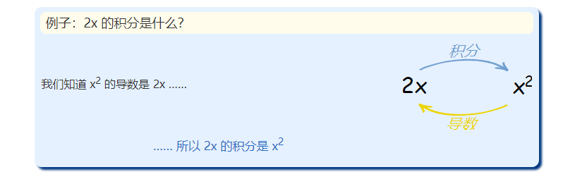 当我们把计算 倒转 来求积分时,我们只知道 2x,但其实答案可以有任何一个常数。