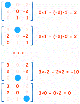 + 把 a 乘以不在 a 的行或列上的 2×2 矩阵的行列式。