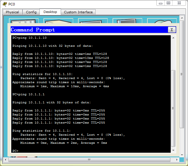 PC2与PC0不连通: 3.进行路由器的基础配置。 ――截图(每项1个图)