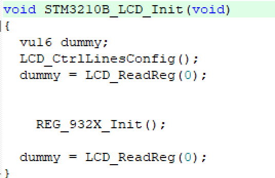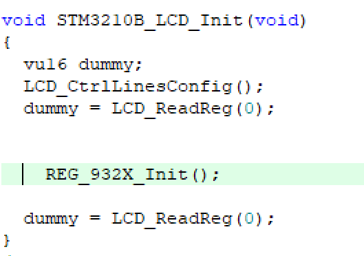 STM3210B_LCD_Init(void) —go to definition之后修改至图所示。—> ——>把 void REG_932X_Init(void)定义再复制过来。