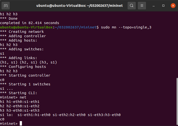 3.能够使用Mininet的命令行生成特定拓扑;