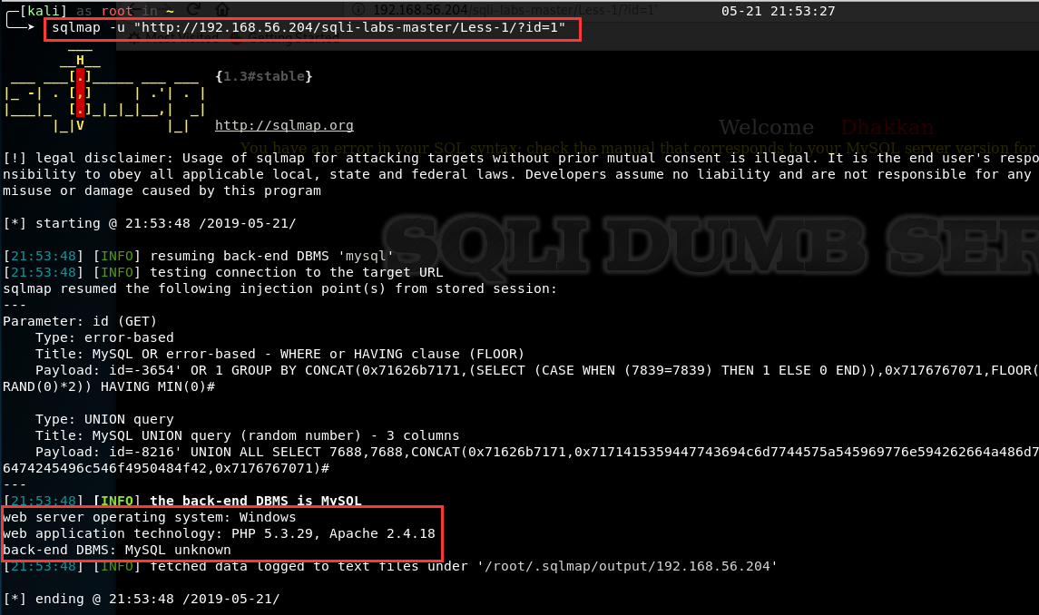 sqlmap -u "http://192.168.56.204/sqli-labs-master/Less-1/?id=1"