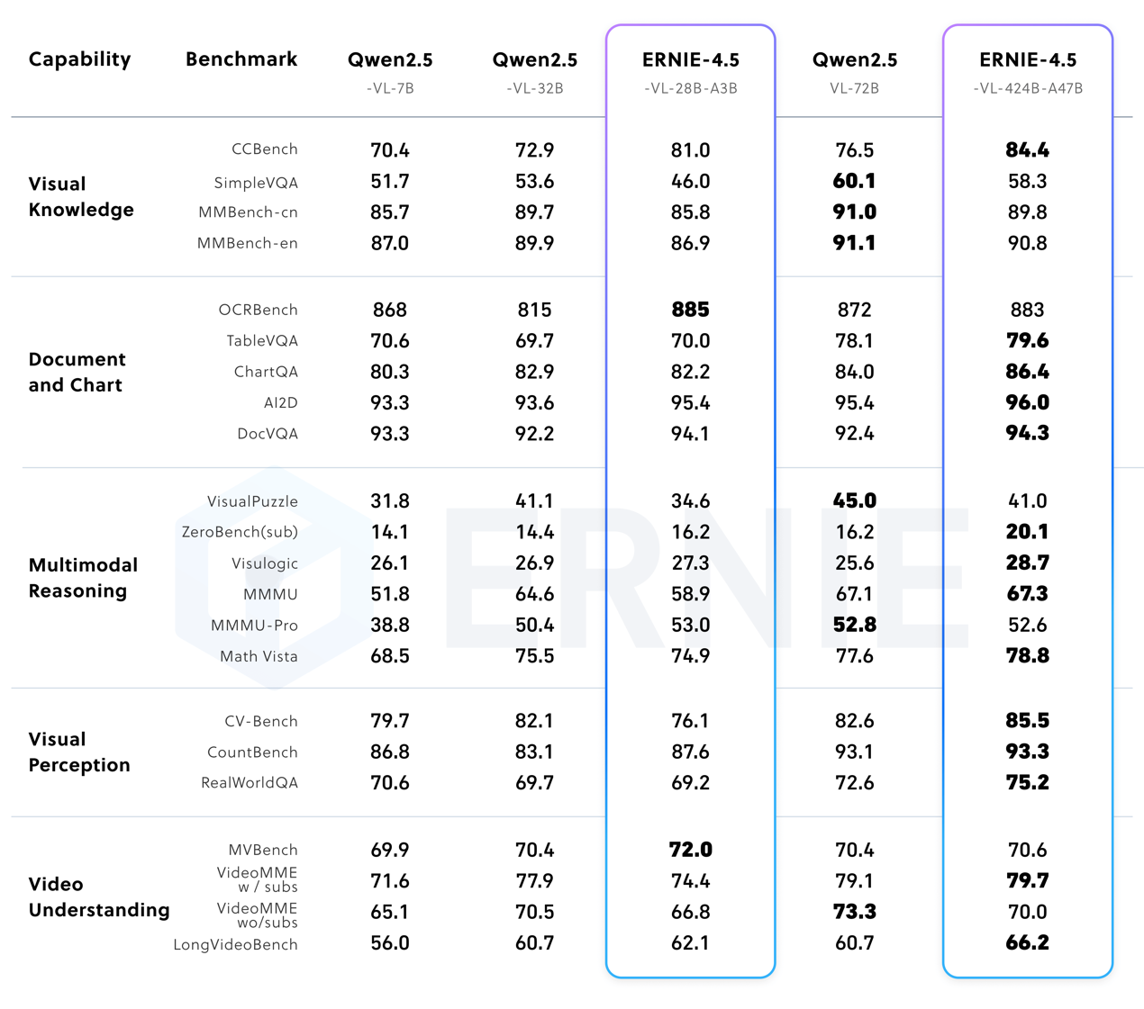| ERNIE-4.5-VL-424B-A47B-PT | 424B | 47B | MoE | Text & Vision | PT |