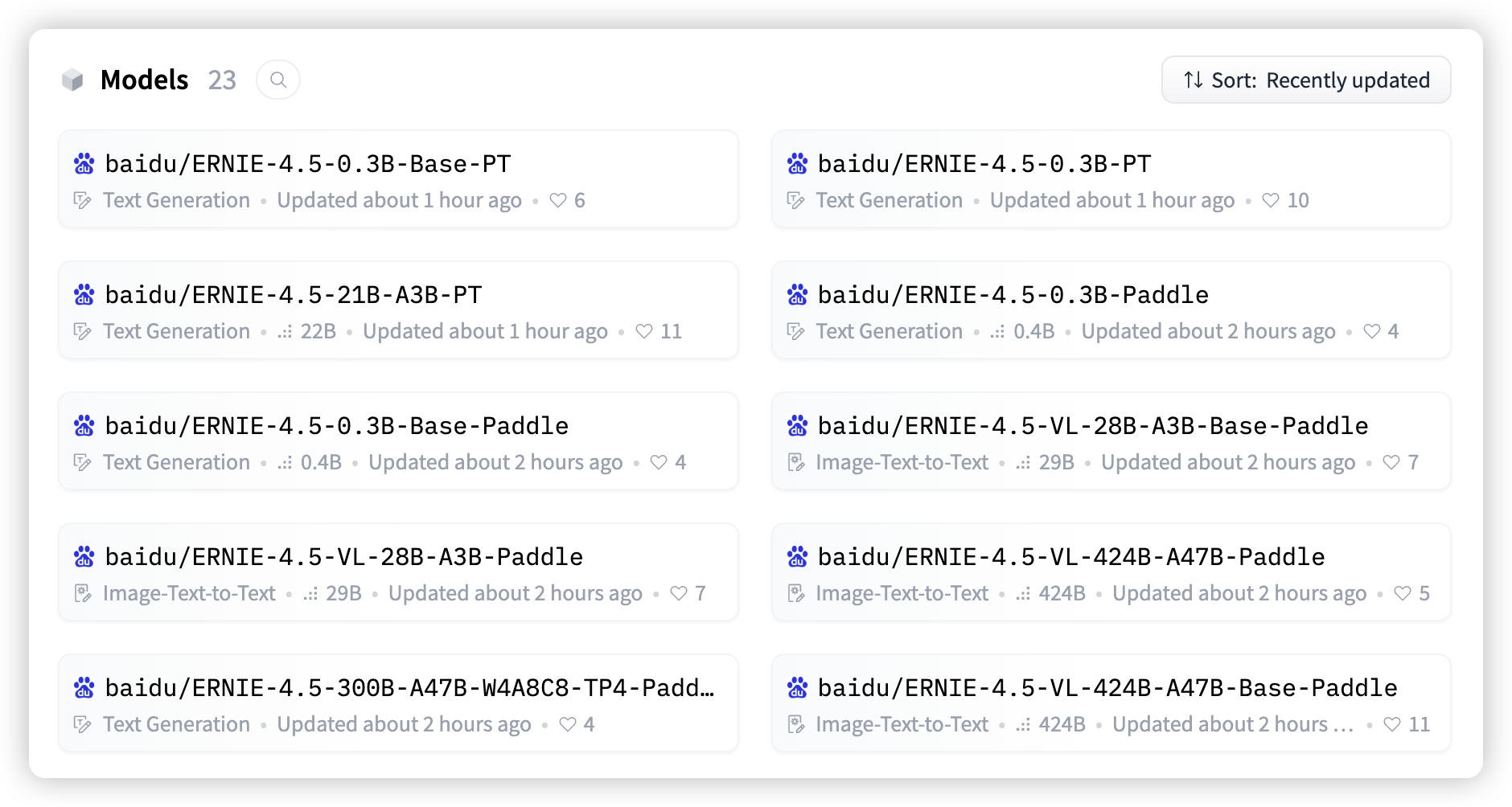 - 另一个是“抱抱脸”:https://huggingface.co/baidu