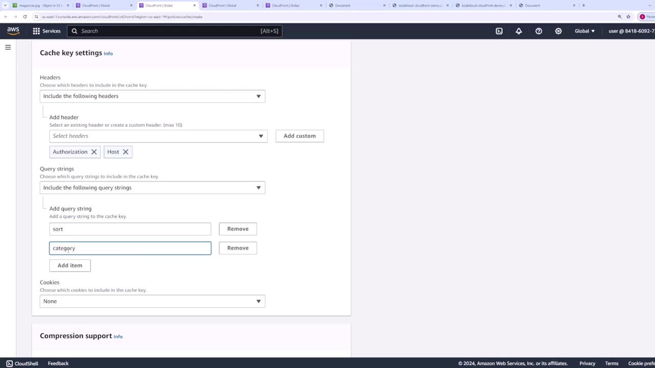 缓存策略: 对于 API,通常选择 “Managed-CachingDisabled” 策略或创建一个所有 TTL 均为 0 的自定义策略。务必将应用所需的