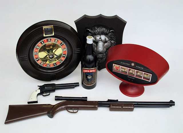 这套系统原理巧妙:枪发射一道短暂的光束,而靶子里内置了夏普的光敏电阻。当光束精准命中靶子上的传感器时,传感器瞬间通电,触发一个机械装置。于是,玩家就能看到啤酒瓶靶“啪”地一下裂成两半,或者听到狮子靶发出一声咆哮 等。这些机械装置就是“中枪效果的玩具”。