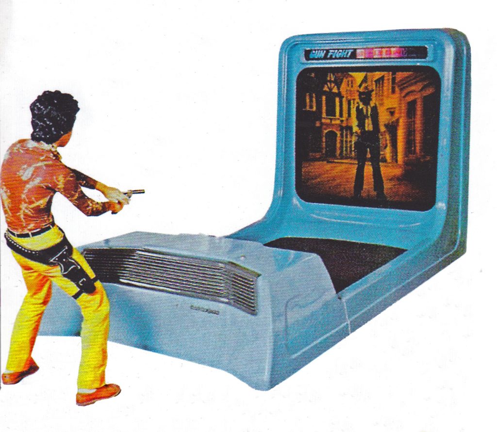 「枯萎技术的水平思考」哲学再次法功。1974年,横井军平团队的杰作《荒野枪手》(Wild Gunman)问世,它完美诠释了什么叫“电机游戏” 。这台机器的核心是一台16毫米胶片投影仪,屏幕上播放的是预先拍好的真人西部牛仔对决的影像 。当牛仔的眼睛闪光时,玩家必须立刻拔枪射击。一套精密的同步系统会根据你的反应速度,切换播放“你赢了”或者“你挂了”的胶片片段,从而实现互动。这套技术是从“激光飞碟”那边改良过来的。