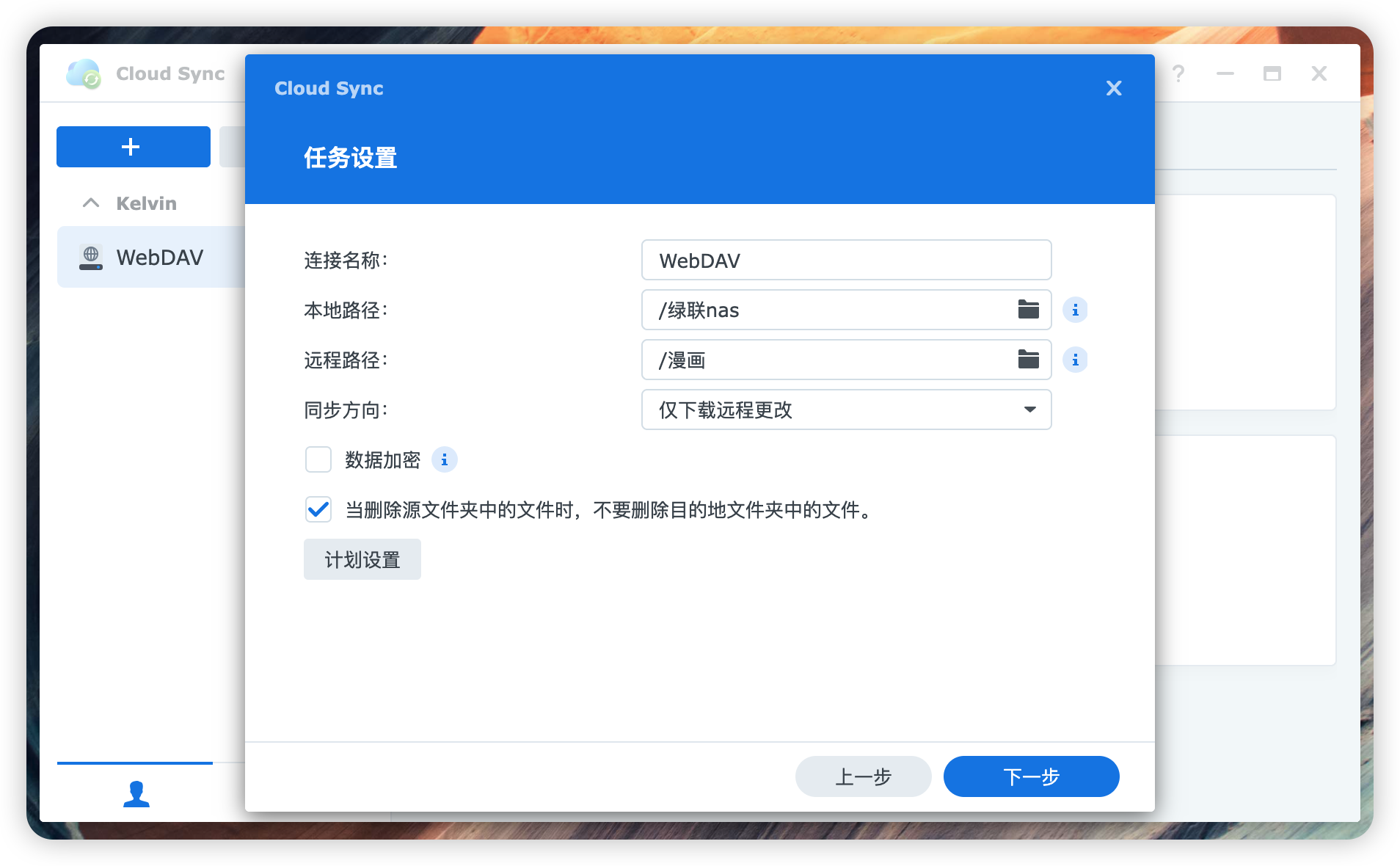 - 本地路径:把资源同步到群晖的哪个目录,也是自定义的。