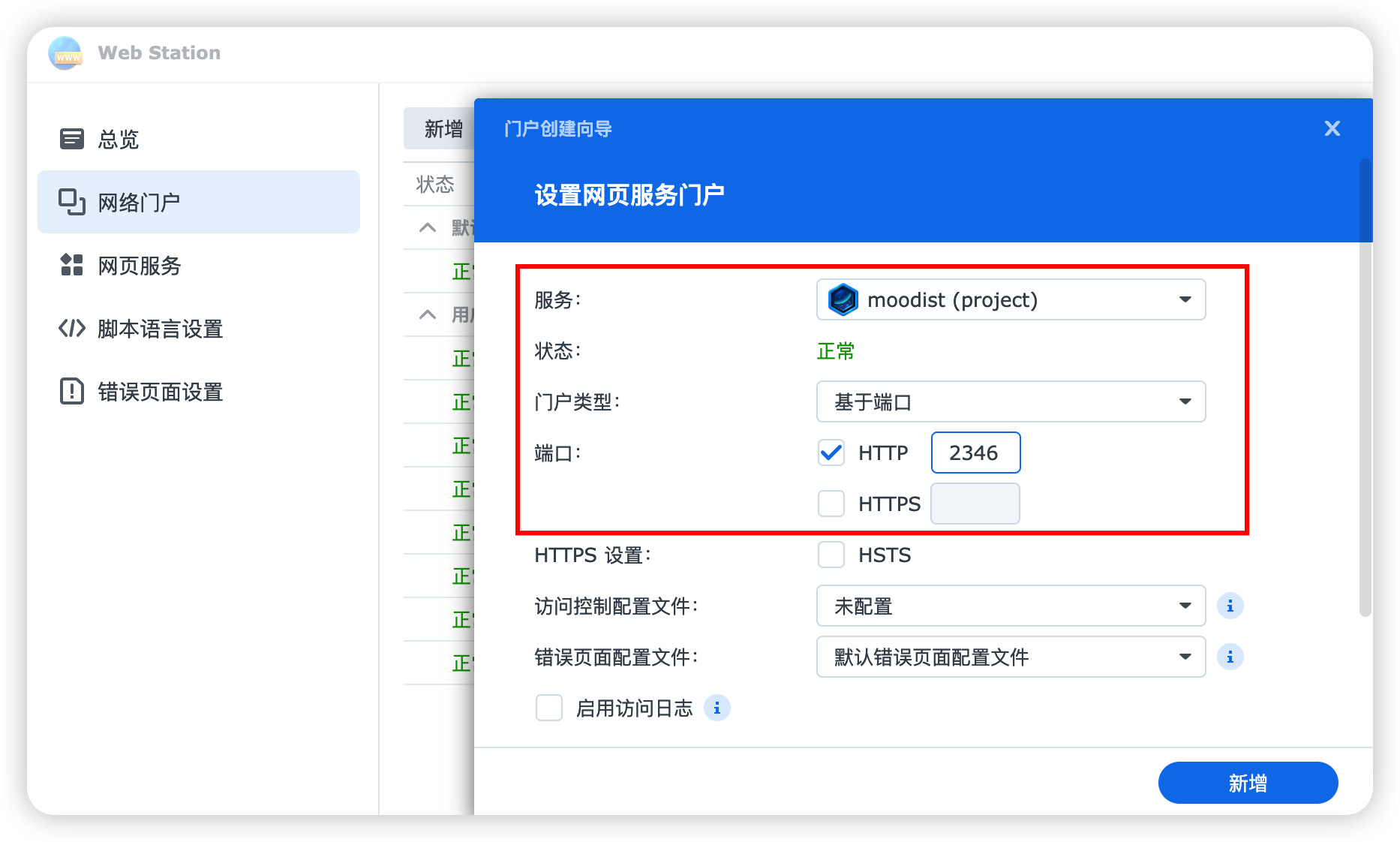 打开“web Station”,创建一个“网络门户”。