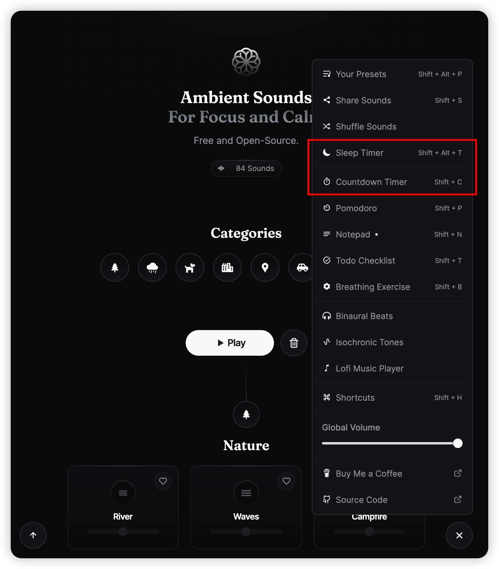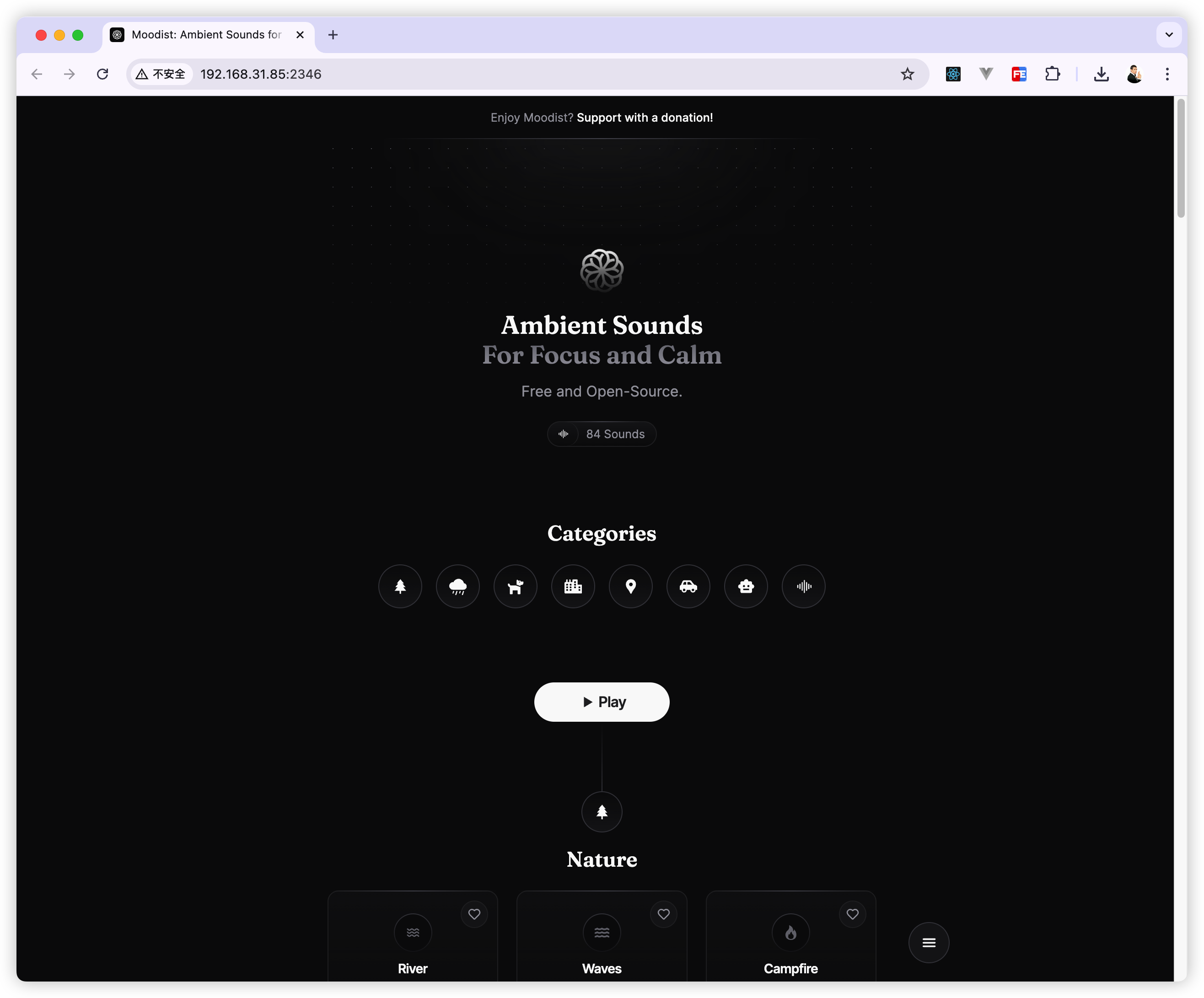 在写本文时,moodist 已经更新了86种声音了。