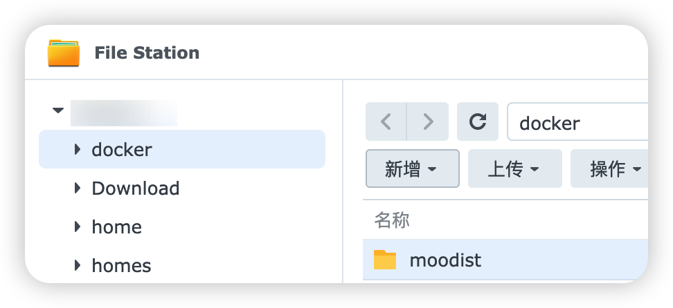 今天用的是群晖NAS,按照国际惯例,在 docker 文件夹下创建一个 moodist 文件夹。