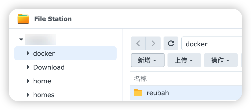 首先在“File Station”里找到“docker”文件夹,在“docker”文件夹里创建“reubah”文件夹。