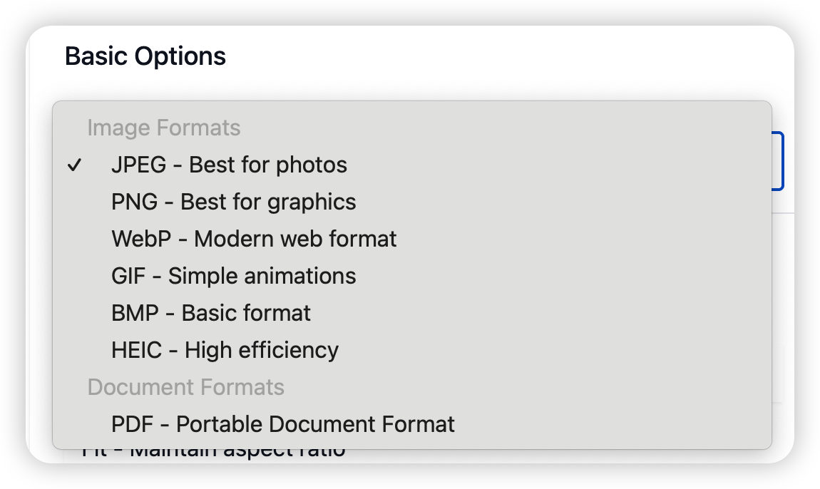 常见的 jpeg、png、webp、gif、bmp 以及将图片转换成 pdf 都是支持的。