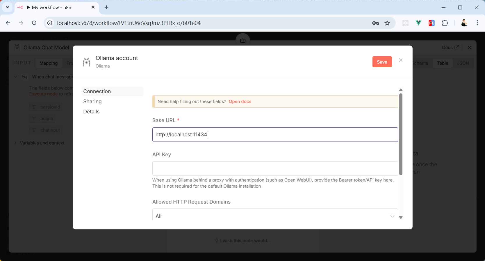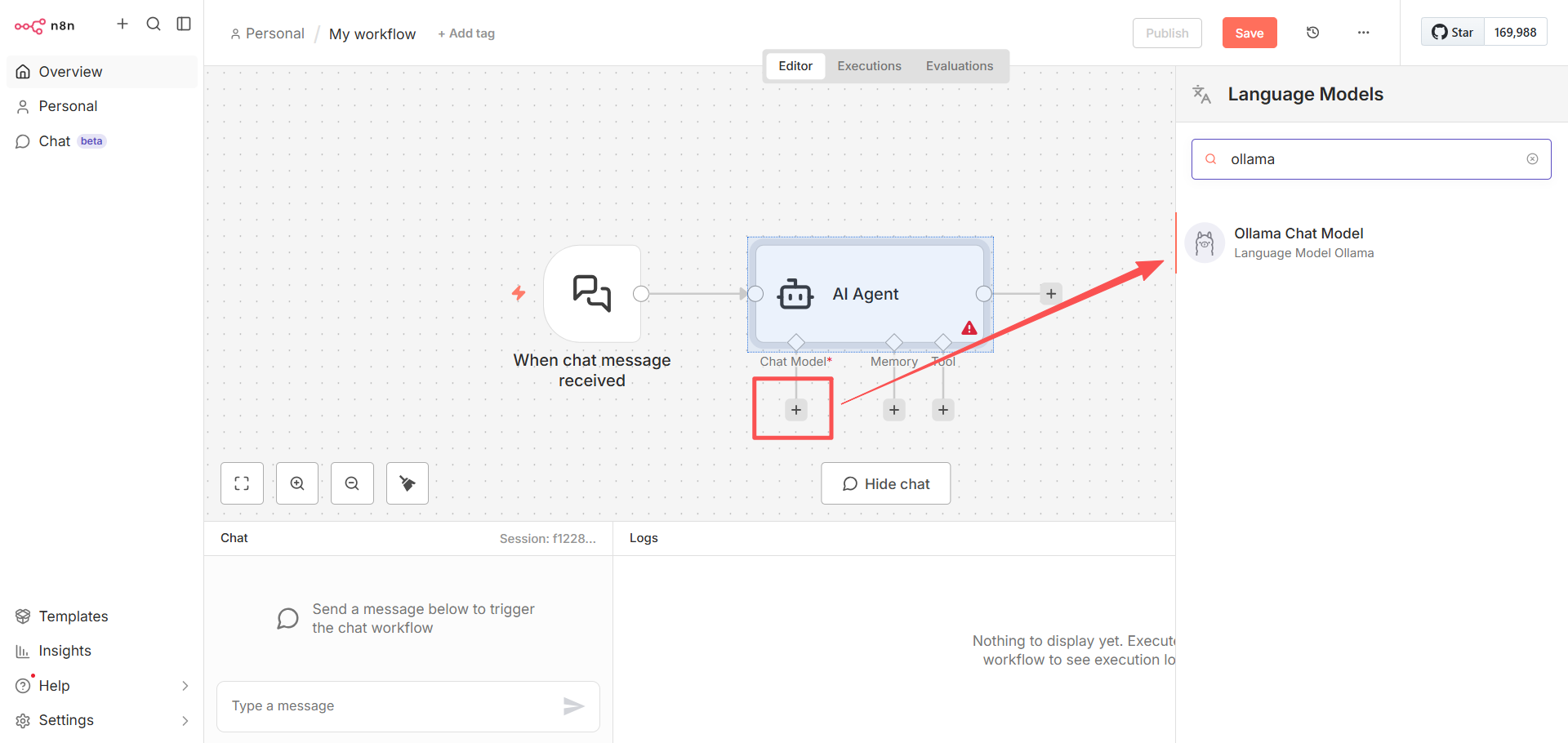 然后关掉“Ollama Chat Model”弹窗。