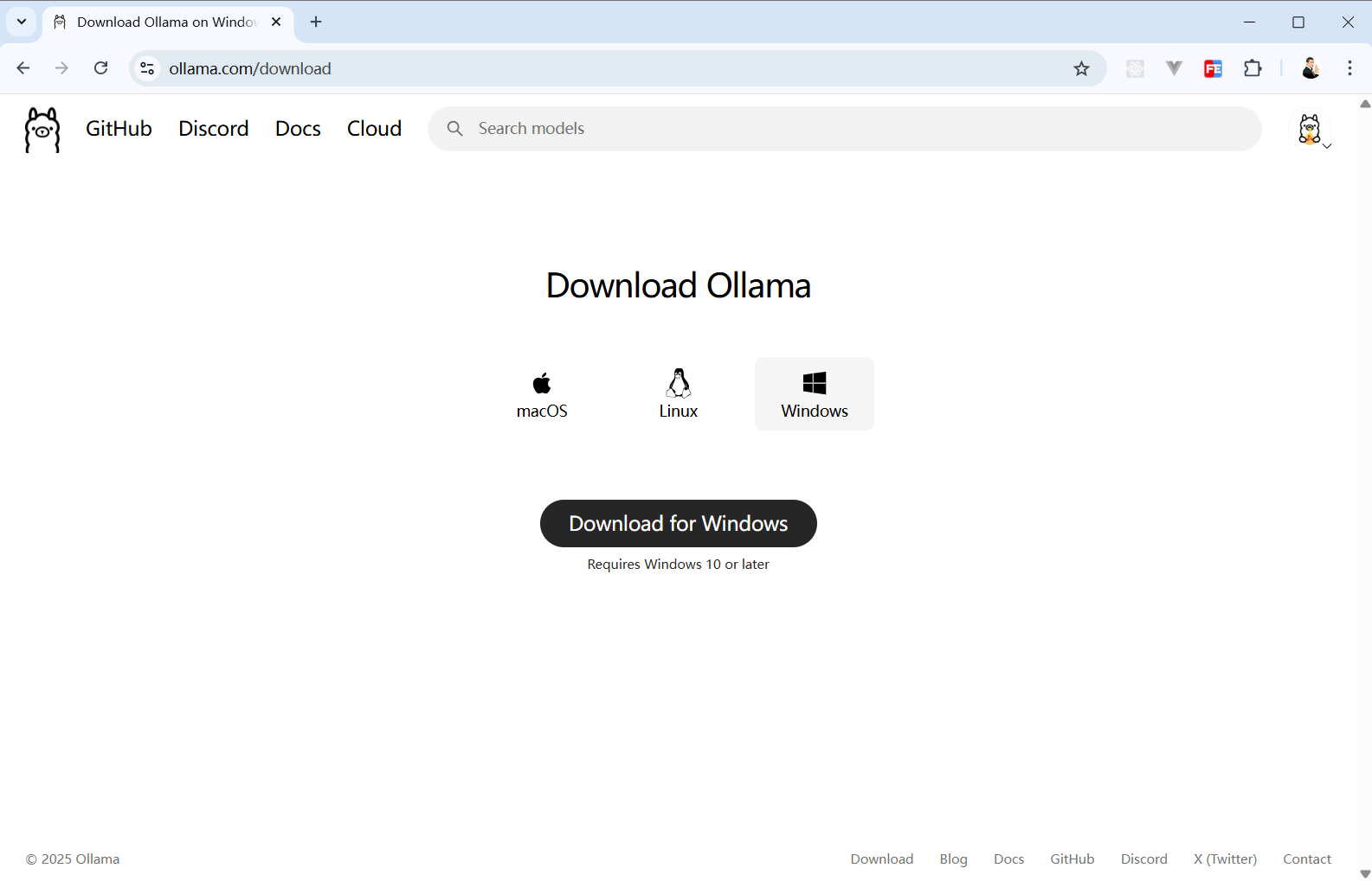 打开 Ollama 官网,切换到客户端下载页面👉 https://ollama.com/download
