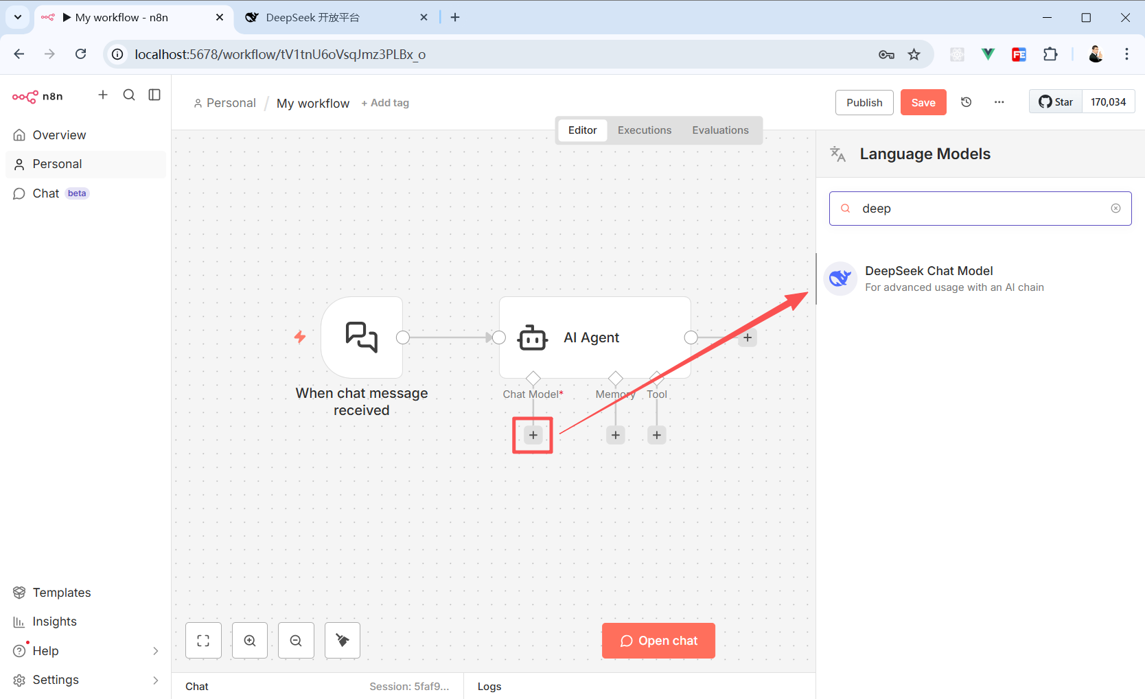 接入的大模型这里搜索 DeepSeek Chat Model。