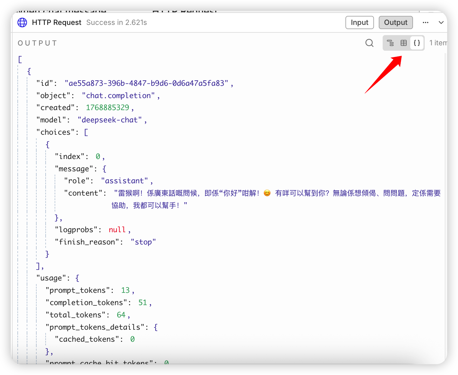 你也可以在下方弹出的控制台右侧的节点输出面板里调整输出数据的展示格式。
