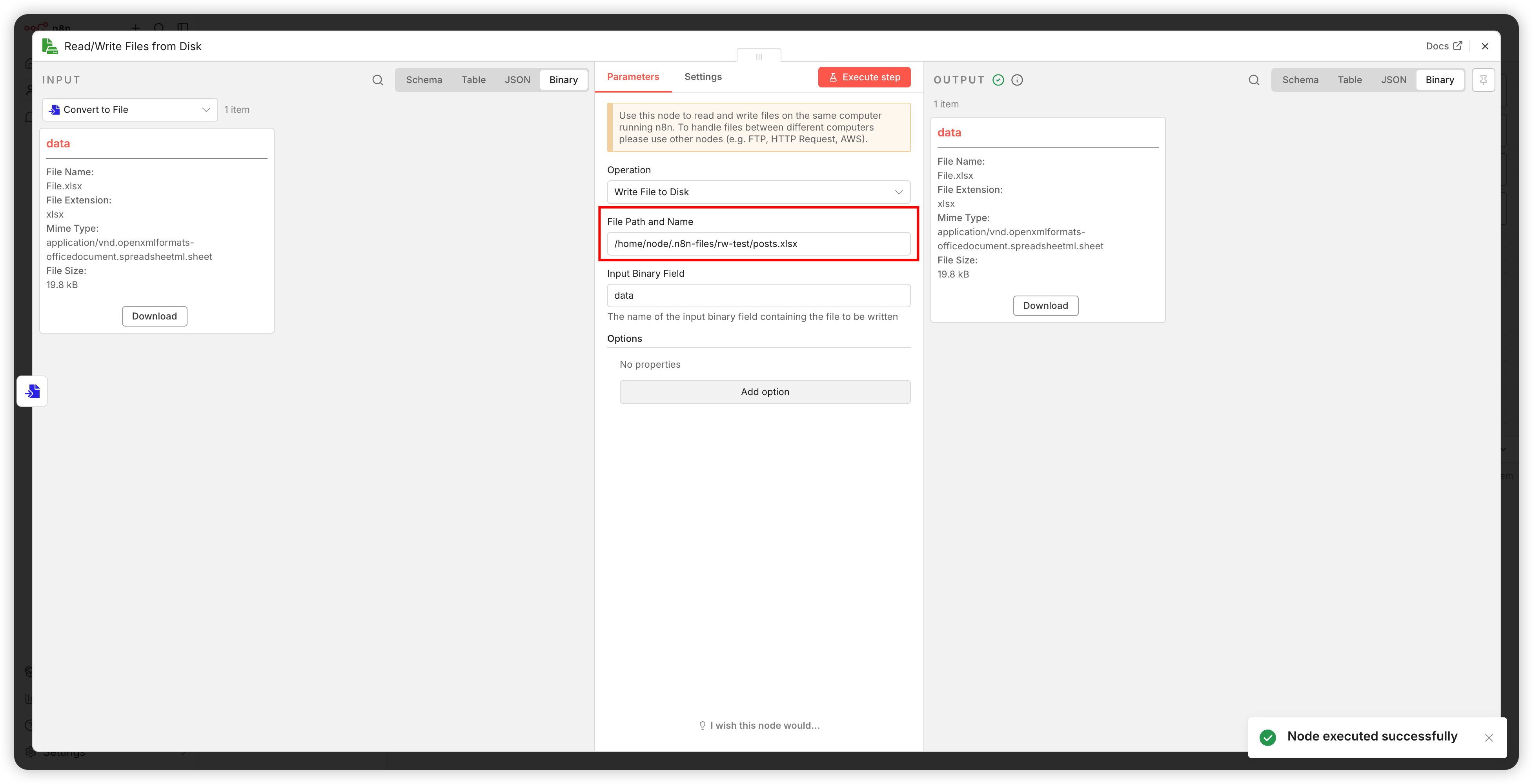 如果你使用 Docker 部署 n8n,读写本地文件的配置请参考 《『n8n』一招解决“无法读写本地文件”》