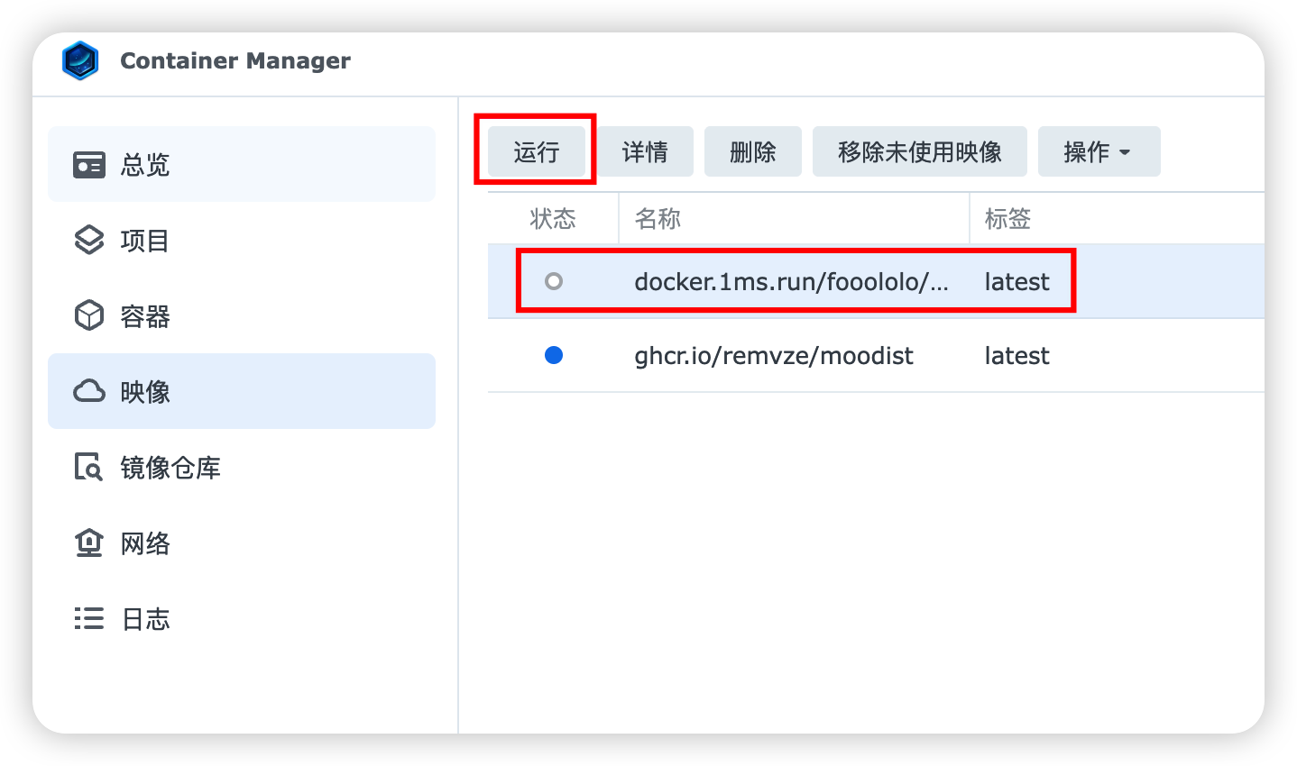 下载成功后,切换到「映像」,选择刚刚下载的 aipan,运行它。