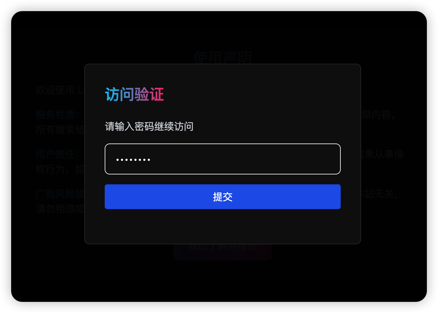 完成上面的操作后,打开浏览器,输入 NAS的IP + libretv的端口 就可以访问 libretv 了。