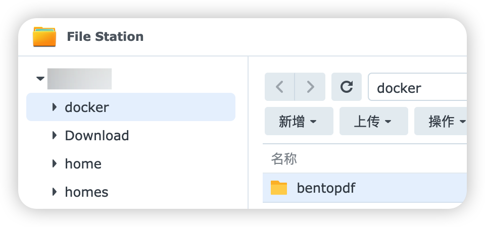 首先在“File Station”的“docker”里创建一个“bentopdf”文件夹。