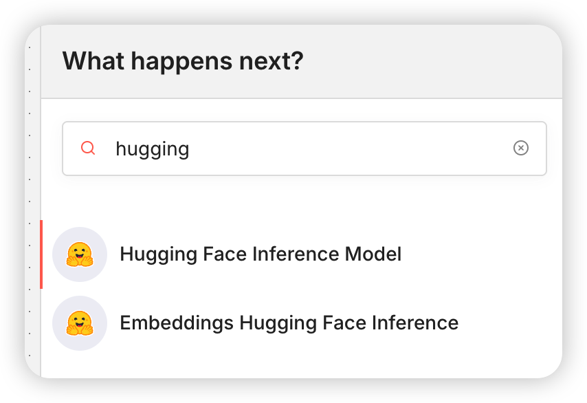 打开 n8n,在界面面板搜索“hugging”,选择第一项。