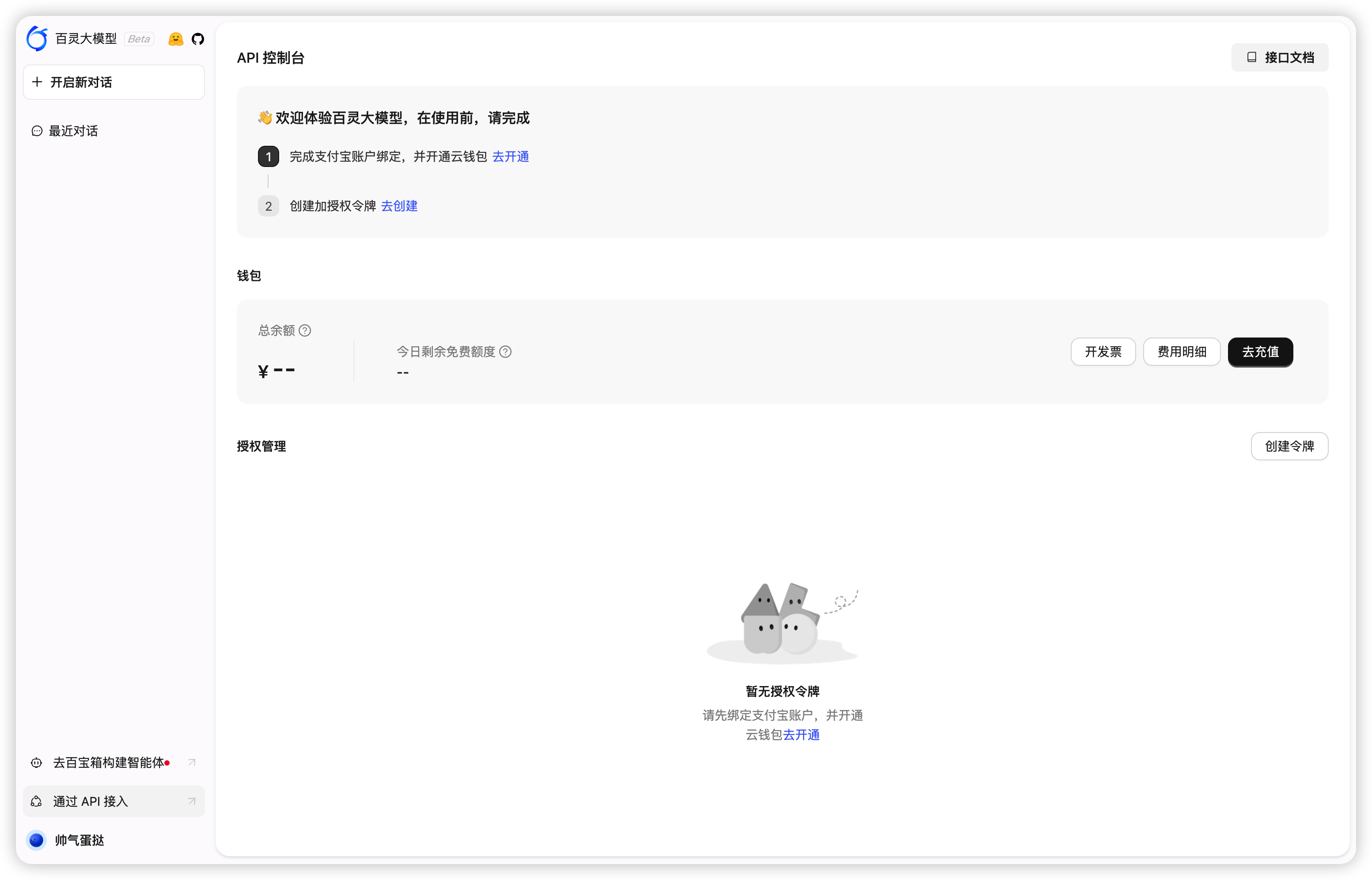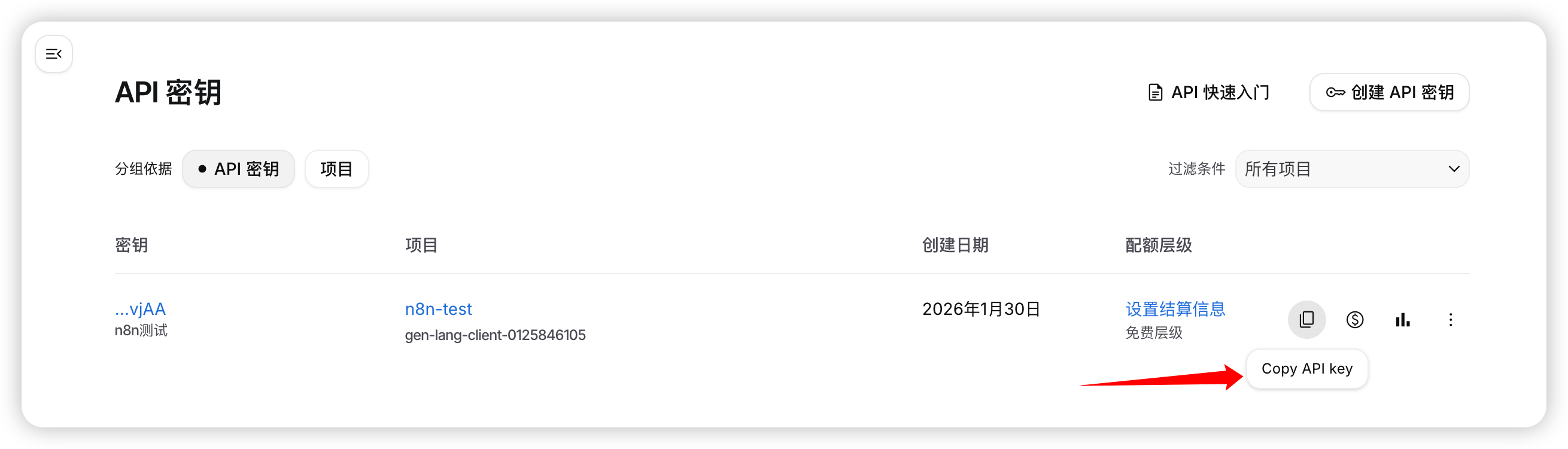 登录后,在 API Keys 页面创建 API Key 就可以用了。