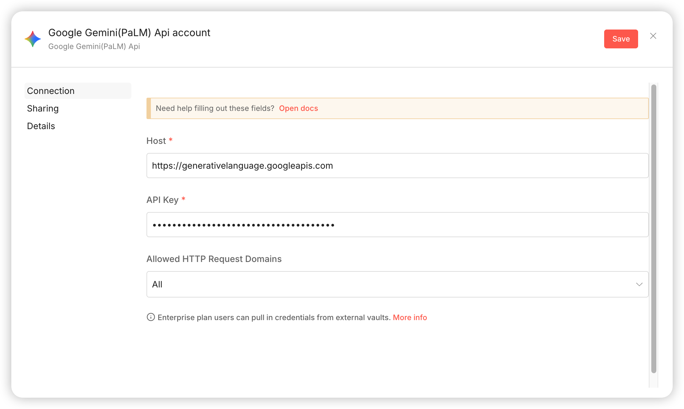 来到 n8n 这边创建 Google Gemini 凭证就能用了。