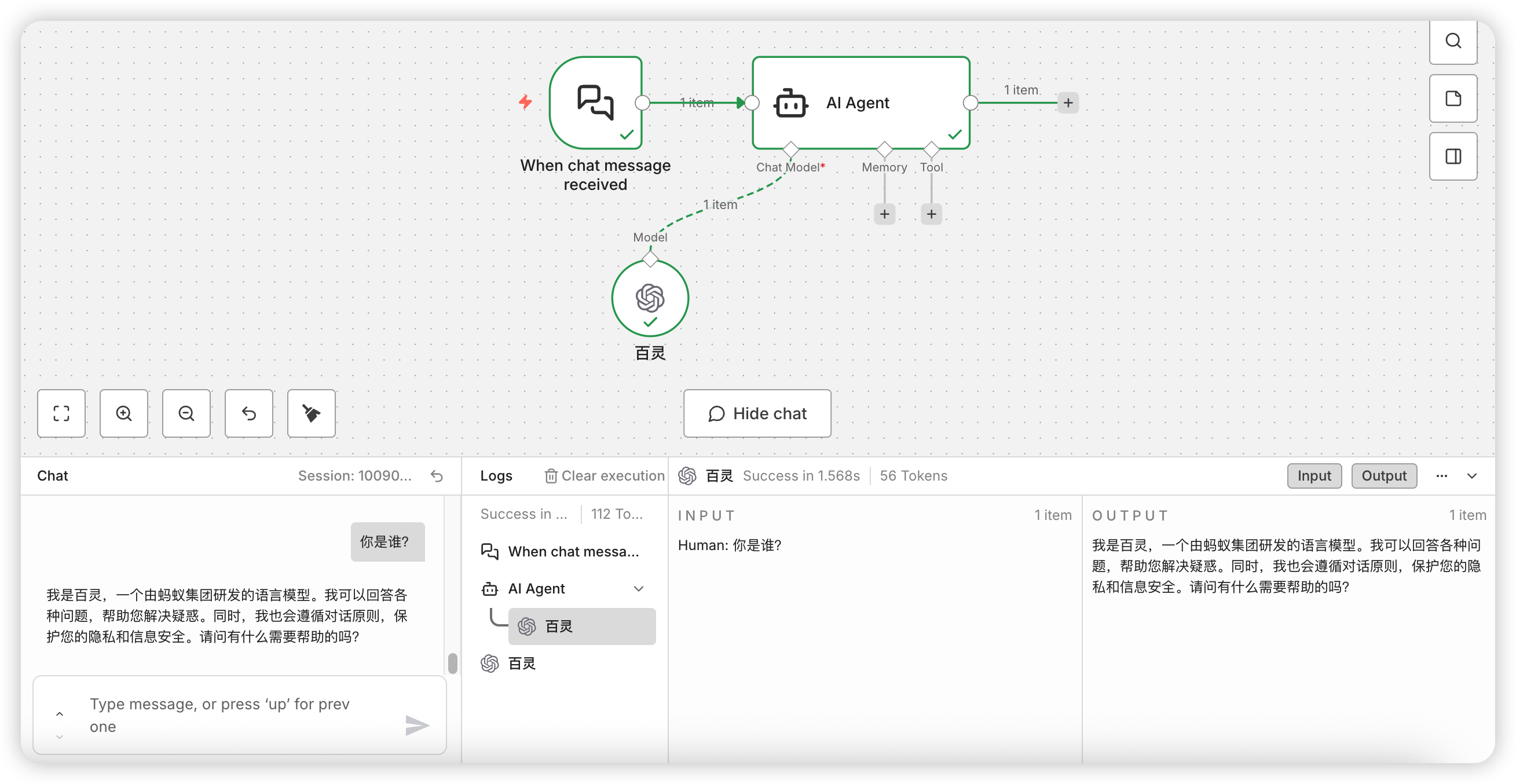 百灵大模型是蚂蚁集团推出的Ling-1T大模型对话体验平台,定位为全能型AI助手,兼顾基础文本处理与复杂推理,支持多模态能力,且适配OpenAI接口格式,能快速集成到n8n中。