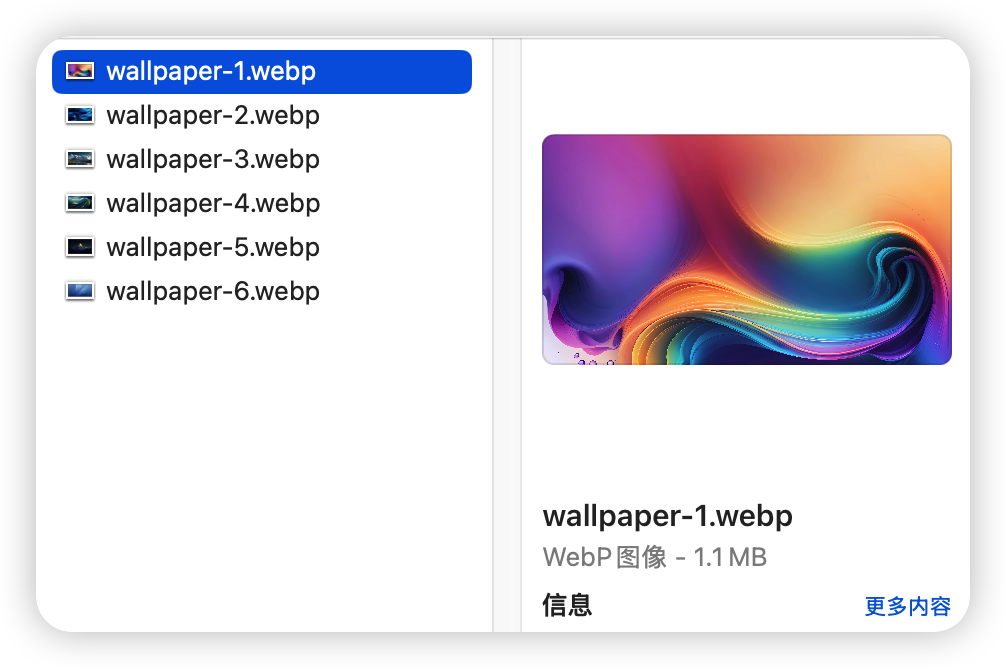 然后随便点击一张静态壁纸(只要不是你当前壁纸就行),控制台就会出现一个名为 wallpaper-[x].webp 的壁纸。