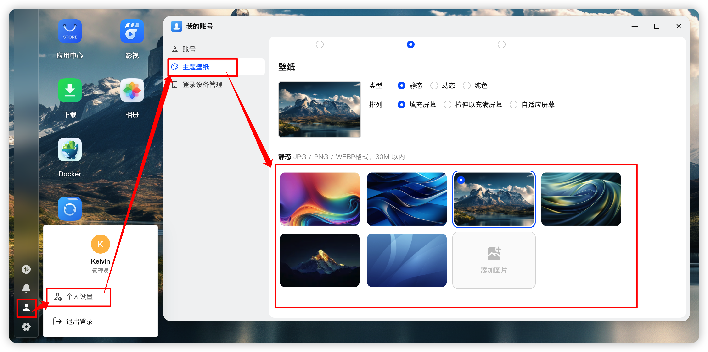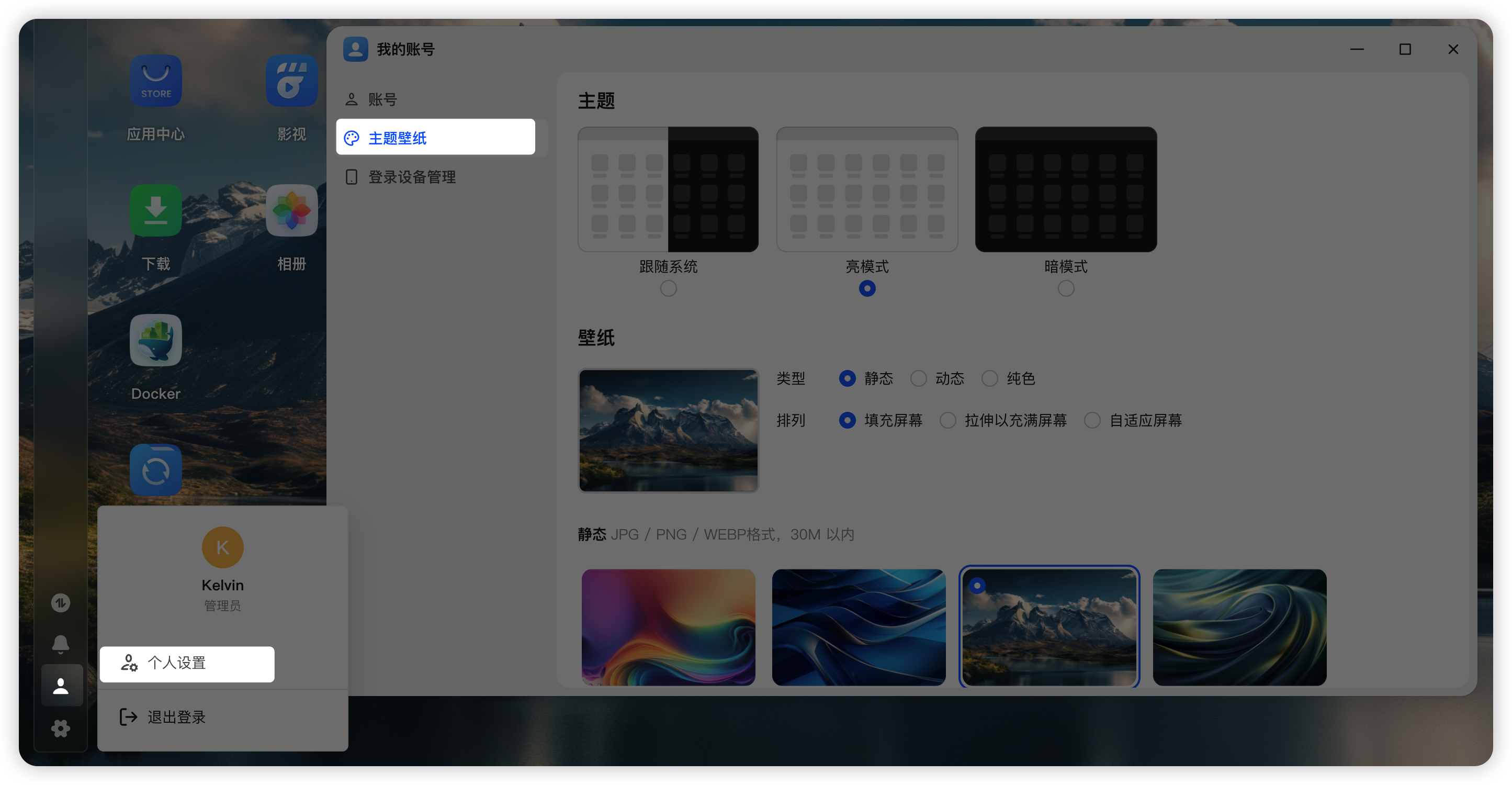 fnOS 自带了6张壁纸,有需要的可以按照本文操作领取。