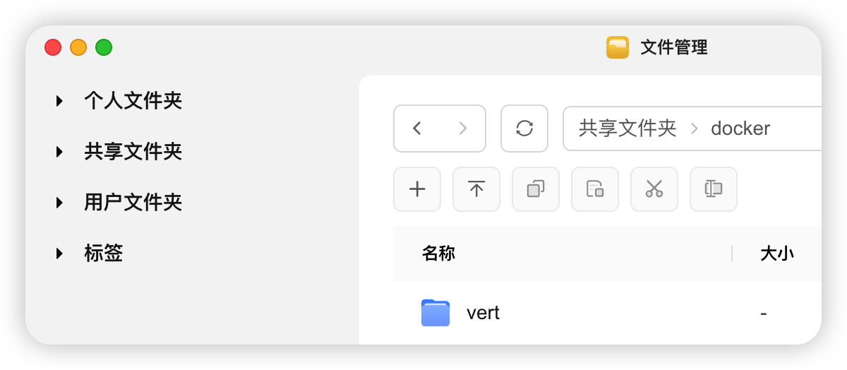 首先在“文件管理”应用里找到“docker”文件夹,在里面创建一个“vert”文件夹。