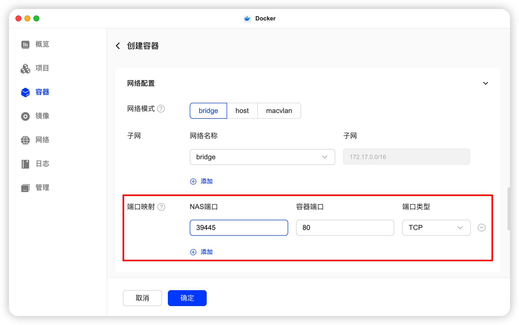 往下滑,”NAS端口“这项可以自定义,我这里选的是 39445 这个端口。
