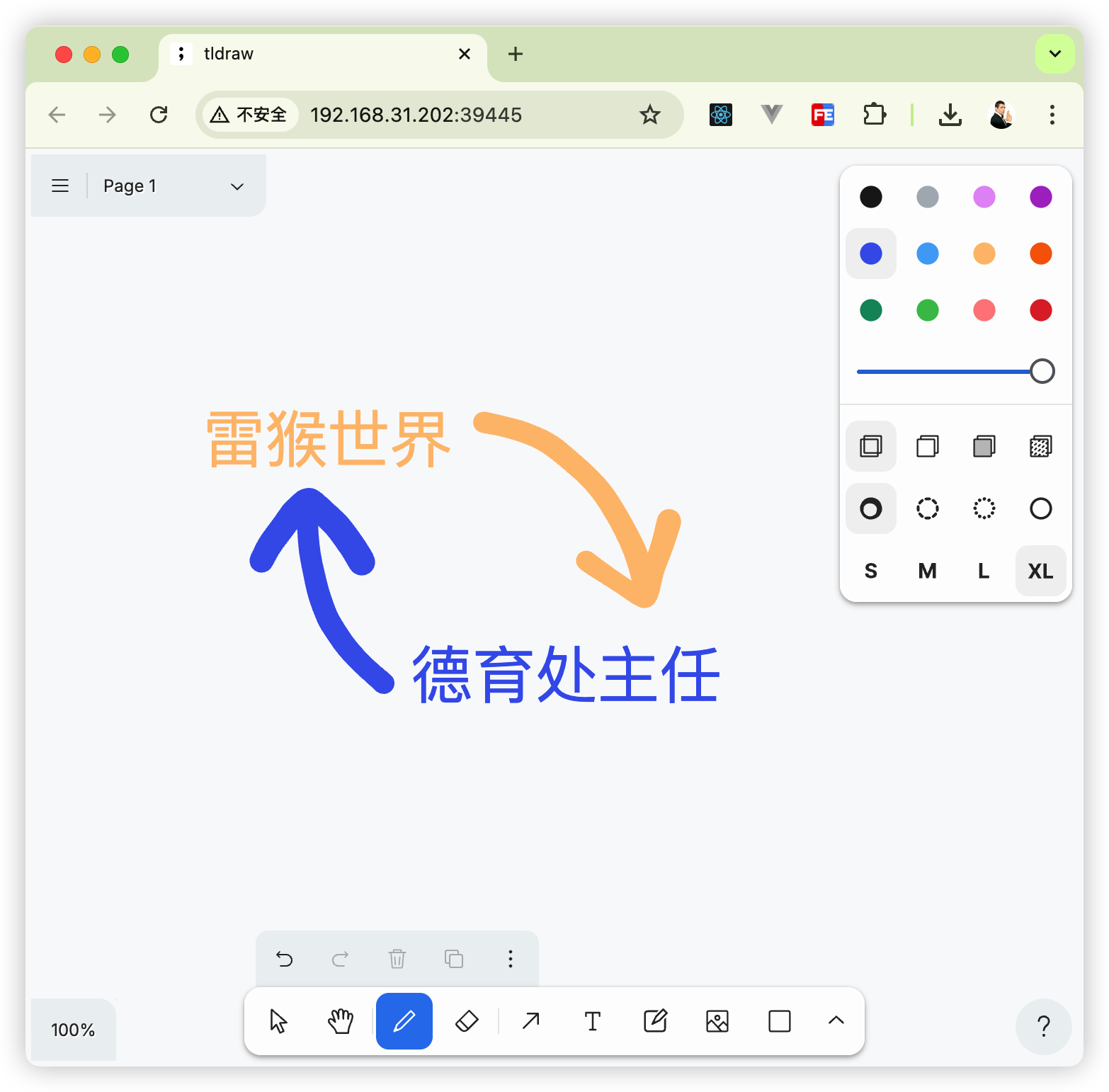 tldraw 是一款开源免费的轻量级协作白板工具,NAS 可以通过 Docker 就能一键部署,群晖、绿联、极空间等主流 NAS 全适配,无需复杂配置。它拥有无限手绘画布,支持画笔、形状、连线、文本便签等实用功能。