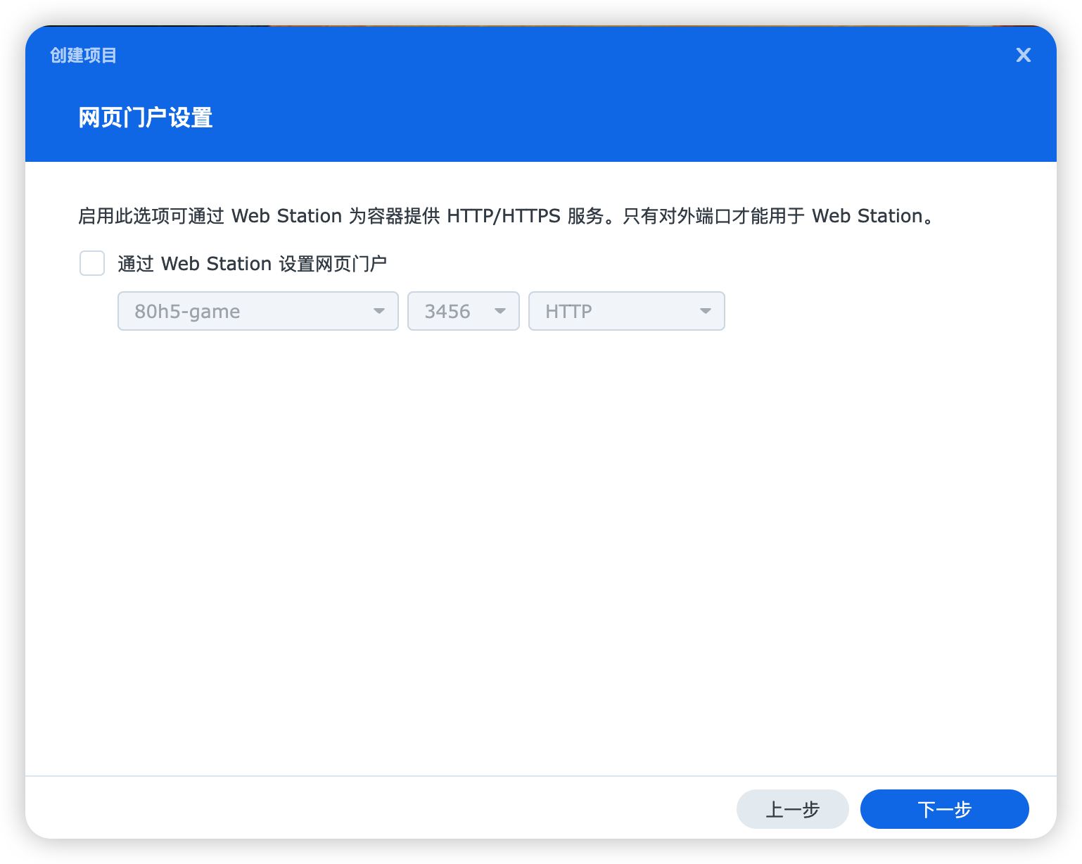 “通过 Web Station 设置网页门户”这项可以不勾。