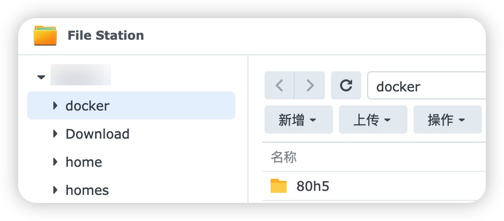 首先在“File Station”里找到“docker”文件夹,然后在里面创建一个“80h5”文件夹。