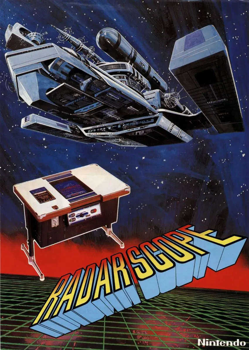 上面几款都是1979年发布的。到了1980年突然发力,做了一款伪3D的《太空侵略者》,名叫《Radar Scope》(《雷达范围》),使用了近大远小的设计,远一点的敌人就小一点,越靠近的敌人就越大。这款游戏在日本的反响也不错,直至它漂洋过海去到美国……