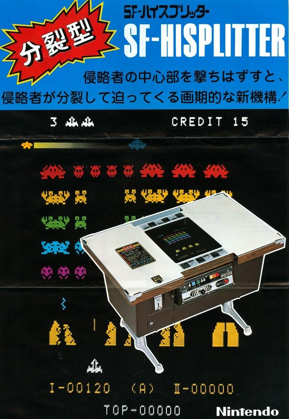 山内溥的嗅觉是出了名的灵敏,《太空侵略者》这么火不可能不抄袭。《太空侵略者》1978年4月1日在日本发行,老任1979年就跟上了,推出了《太空狂欢》,同样在原版上做了点微调。