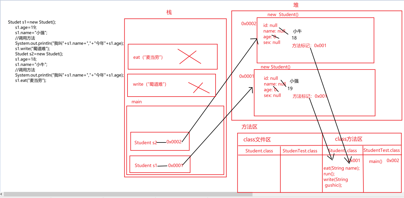2个对象的内存图 (其中有两个引用指向同一个对象)和两个对象的内存图(方法的共用)