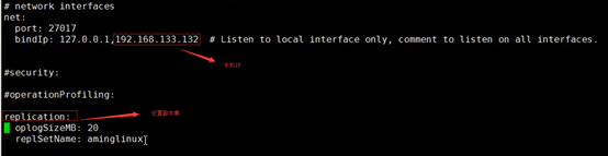 第一步:设置三台机器的 /etc/mongod.conf 文件
