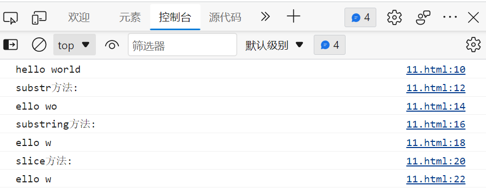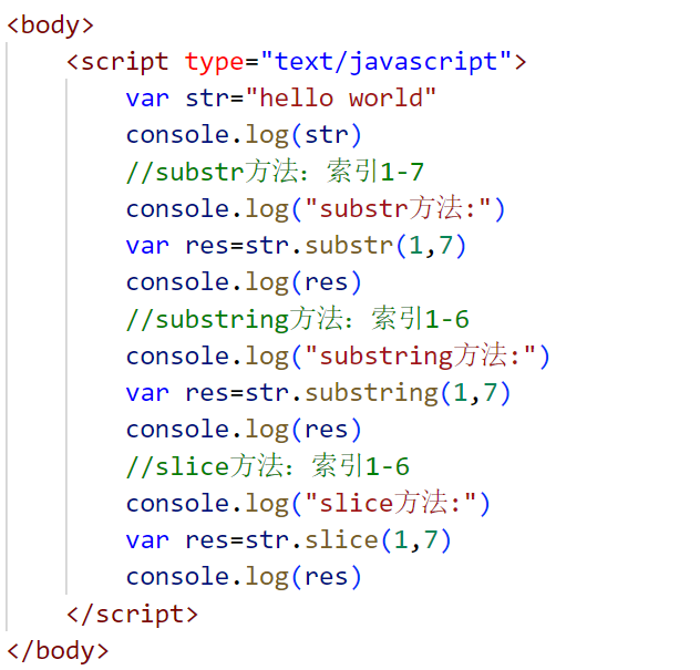 demo08补充(字符串的截取-substr,substring,slice)从下标0开始;查找下标1-7的字母,substr-[1,7],substring-[1,6),slice-[1,7)